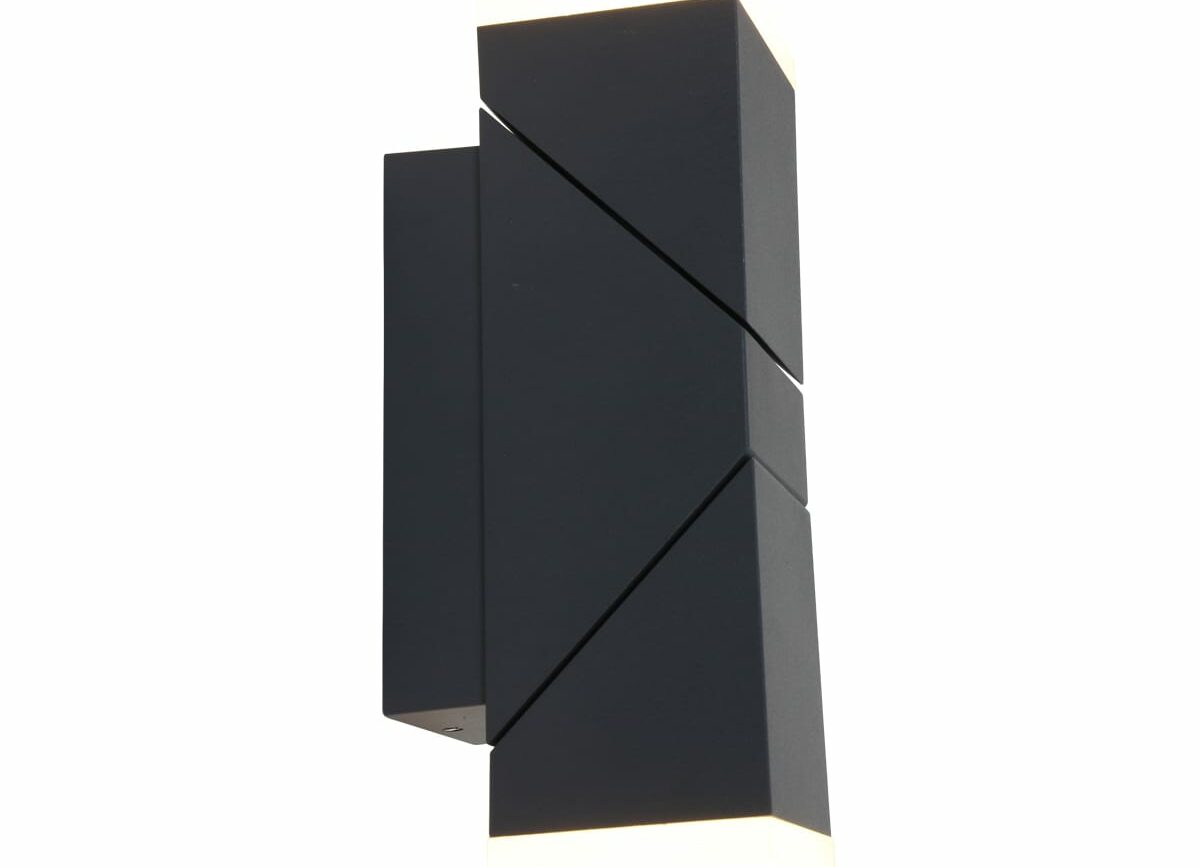 2 lichts buitenlamp met een zwarte moderne kleur geeft zowel van de onderkant, als de bovenkant licht. De behuizing is gemaakt van aluminium en afgewerkt met een glasplaat. De krachtige lichtstraal verlicht het huis en tuin op een efficiënte manier (strijklicht). De zwarte lamp wordt inclusief 2 GU10 (345 Lumen, 2700 Kelvin) lichtbronnen geleverd. De compacte muurlamp heeft een diepte van 7 cm en is 15 cm hoog. Deze buitenlamp beschikt over een IP54 waarde. Dit betekent dat hij spatwaterdicht en stofvrij is. Bestel deze buitenlamp nu online met de service en garantie van lampbestellen.nl 1496ZW