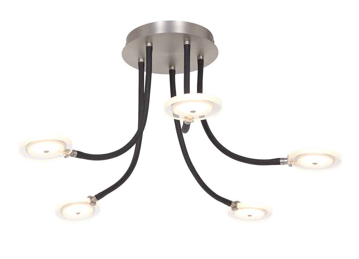 Moderne Plafondlamp uit de Turound serie met helderglas als reflector en flexibele armen. De lamp is voorzien van een vervangbare LED module van 10 Watt met 2700 Kelvin en 5000 Lumen.