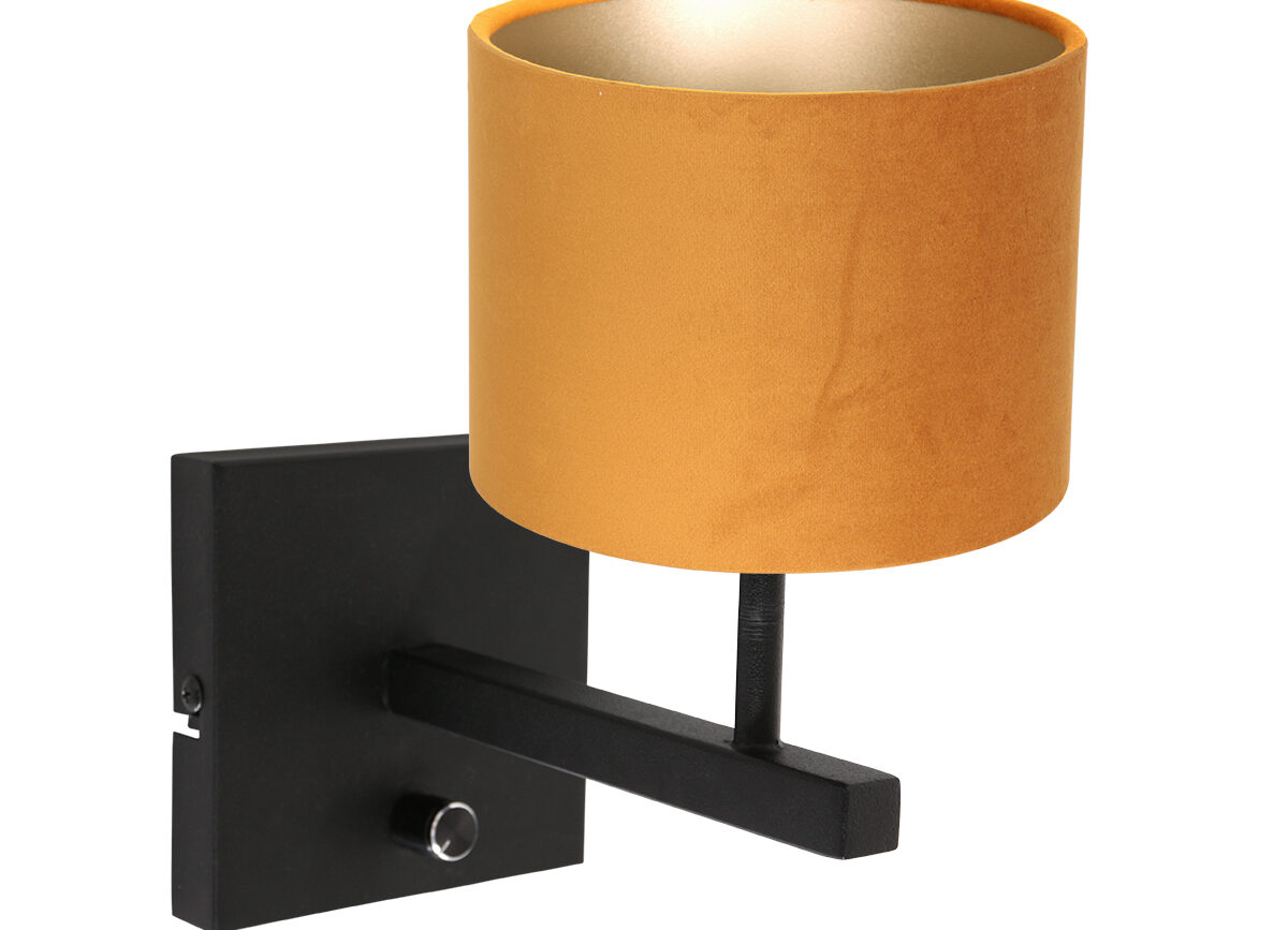 Steinhauer Zwarte vloerlamp Bloeba 4168ZW met goud velours kap