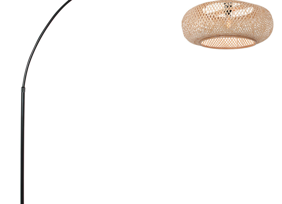 Zwarte Booglamp Sparkled Light 4149ZW met naturel bamboe kap