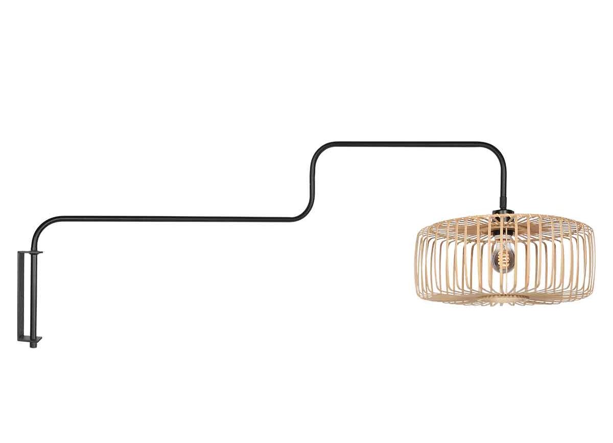 De kantelbare E27 fitting zorgt ervoor dat de prachtige bamboe kap (Ø40 cm x H17 cm) altijd stijlvol recht hangt, ongeacht de positie van de arm. Zo blijft de lamp altijd in balans – visueel én functioneel. Deze wandlamp vormt daarmee een echte blikvanger in ieder interieur, en brengt tegelijkertijd een natuurlijk, warm accent in uw woonruimte.
